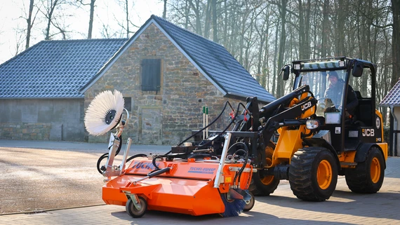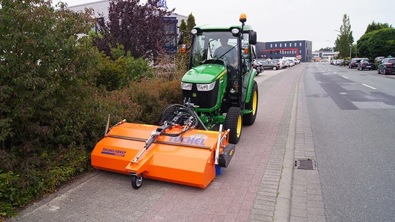 Die Wildkrautbürste WB 750 entfernt mühelos und chemiefrei jegliche Art von Wildkräutern und kann an Radladern, Traktoren, Kommunalfahrzeugen und Baggern angebaut werden