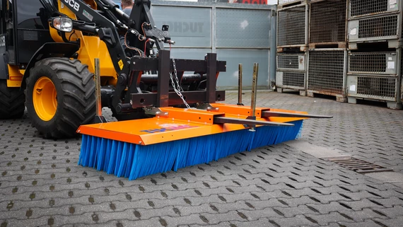 The brush made of 100 % PP mixed bristles trim can be ideally used indoor as well as outdoor. Here, in particular, the bristles are V-shaped to sweep up both solidified dirt and fine dust. The oscillating suspended brush adapts optimally to the ground and provides good dust encapsulation. This sweeper is ideally suited for cleaning halls and buildings.
