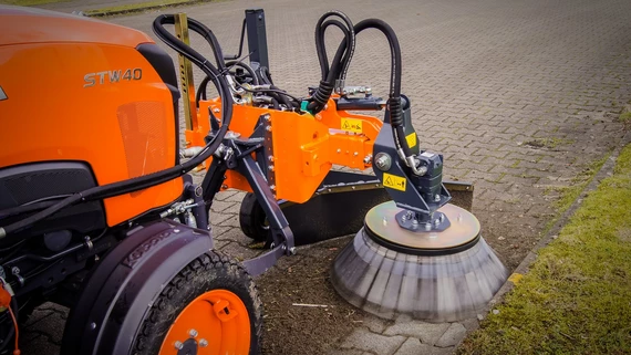 - hydraulically driven side brush for sweeping close to the edge (with water spray unit, if required)